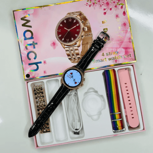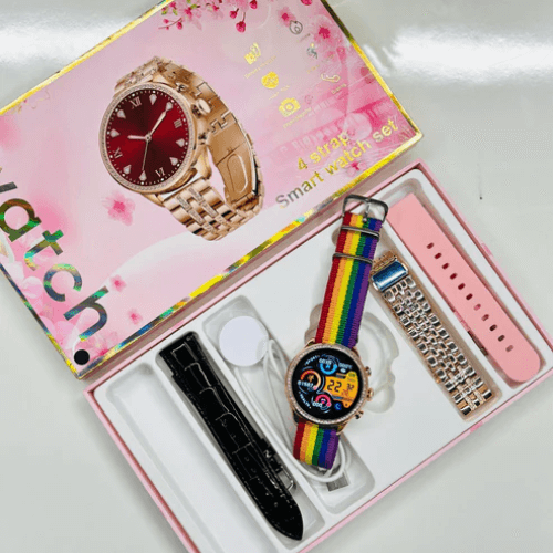 (1 leather belt, 1 Dimond metal belt,1 silicon belt, 1 Velcro rainbow colour belt)